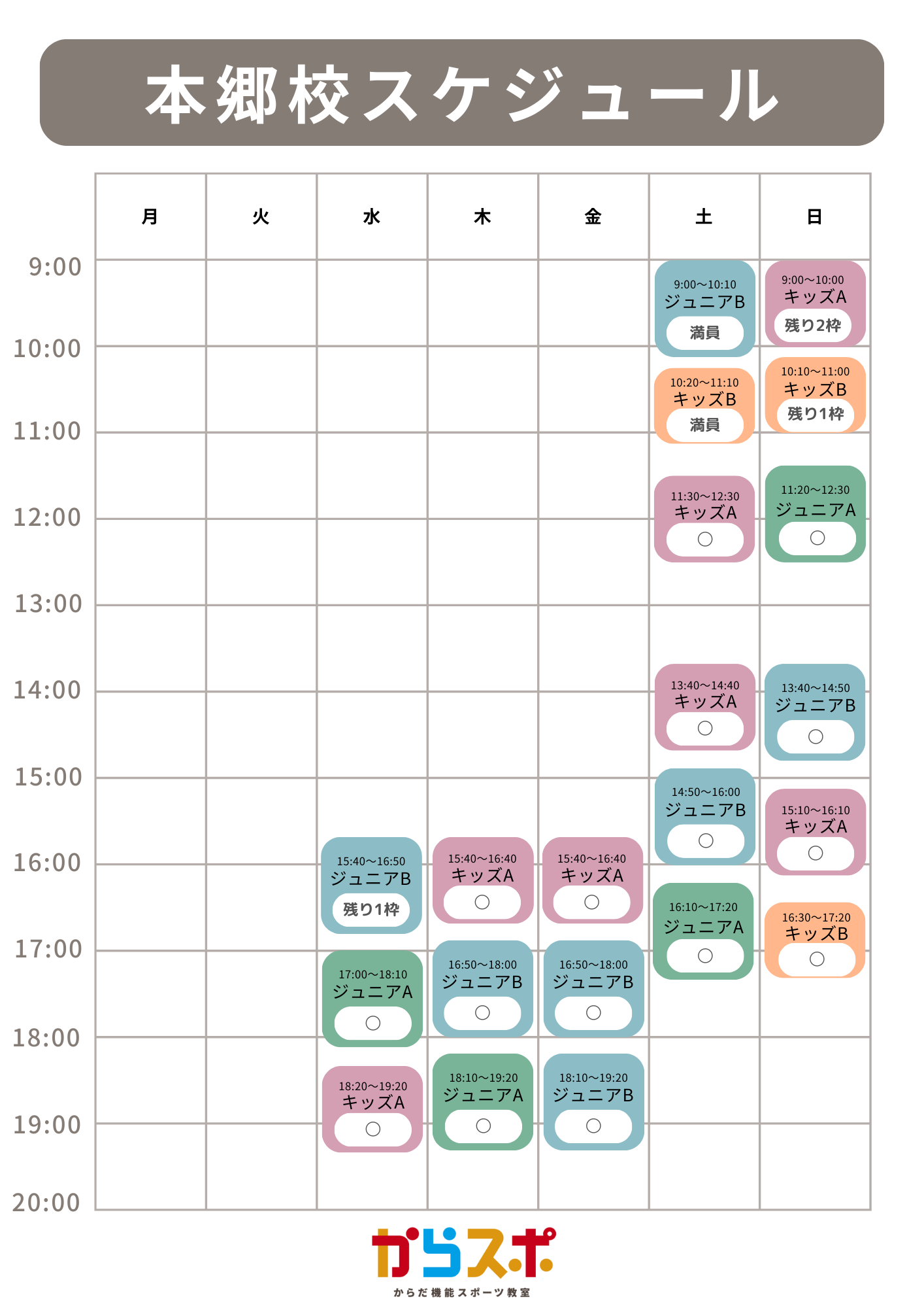 スケジュール・在籍空き状況(2026年2月時点)